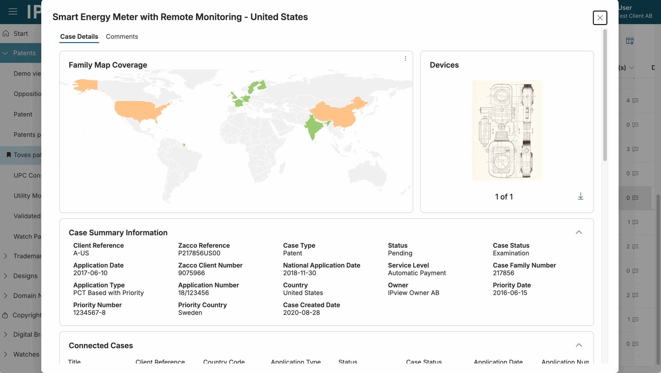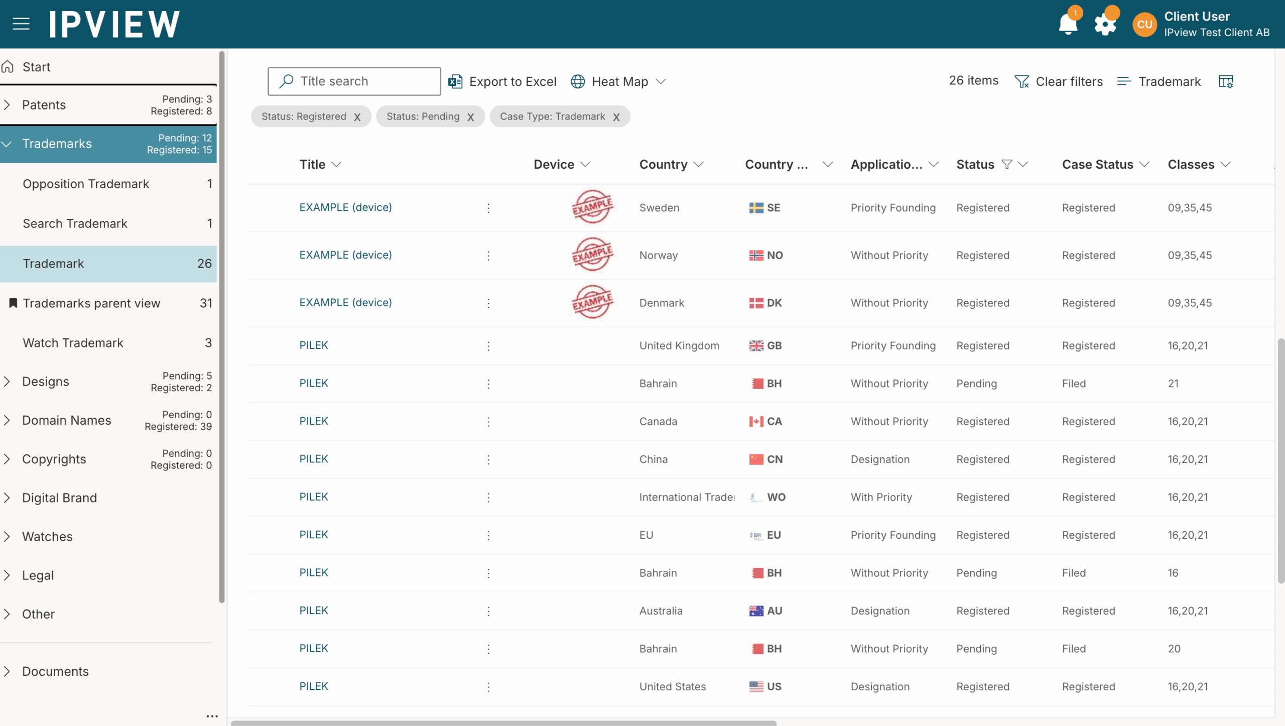 IPview was built to make portfolio tracking and positioning easy, efficient and practical. It provides instant access to a detailed and up to date overview of your IP assets, including patents, trademarks, designs, and domain names.